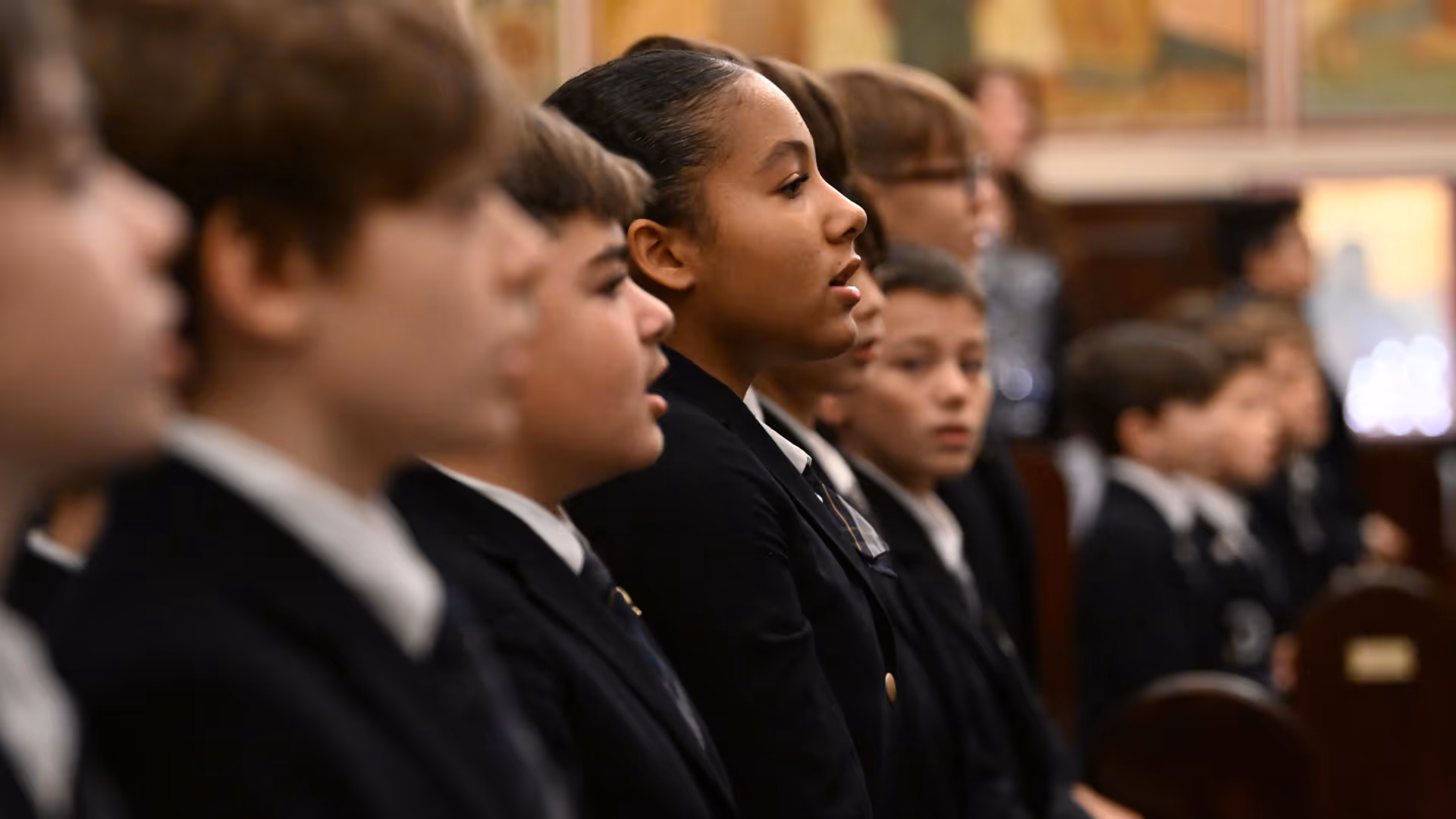 Daily PK-8 instruction builds bilingual fluency, cultural literacy, and cognitive benefits. Music is part of this, with students learning Greek poetry, Orthodox liturgy, and works of Greek composers. The school choir expands this connection through contemporary pieces, language learning via song, and a long-term goal of three-part liturgical music in the middle school choir.